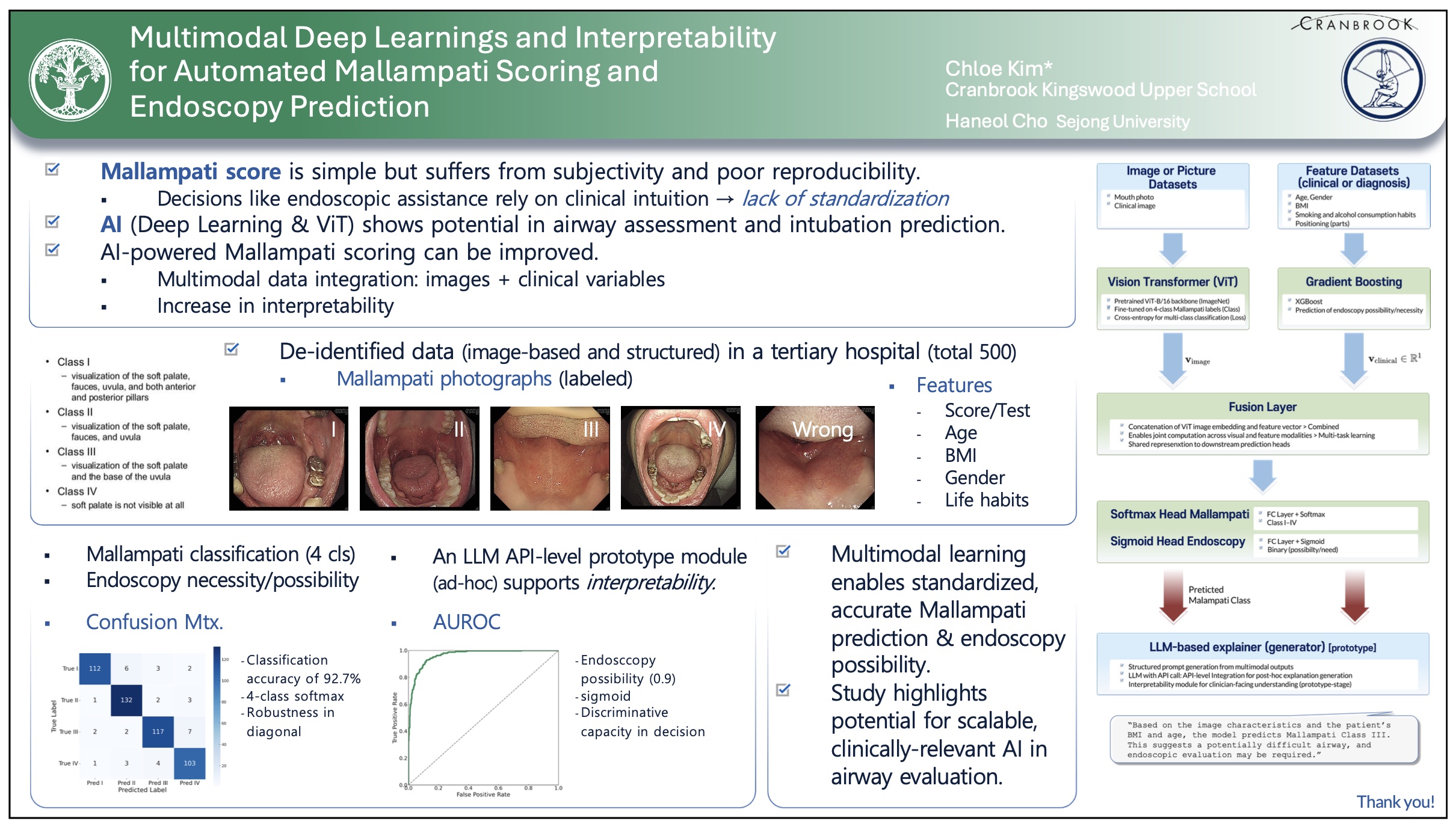Our model achieves an accuracy of approximately 92.7% in Mallampati classification and an AUROC of 0.95 for endoscopy necessity prediction. This highlights the potential of deep learning interpretability to standardize airway assessments and support procedural planning.